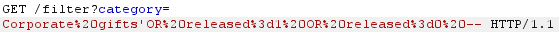 SELECT * FROM products WHERE category = 'Gifts'OR released=1 OR released=0 -- AND released = 1'따라서 category와 상관없이 released 값이 0인 product와 1인 product가 모두 출력될 것이다.